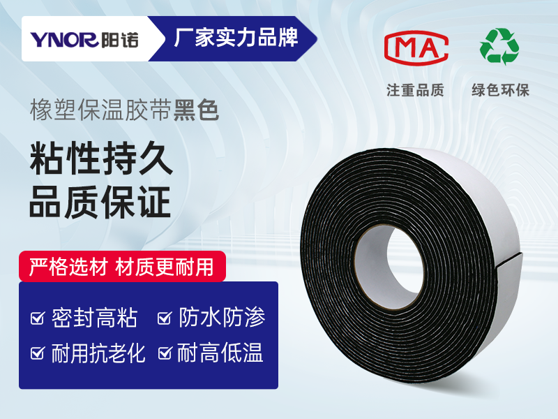 陽諾橡塑保溫膠帶表面為橡膠,因此不需另加隔汽層、防護(hù)層,本身具有防潮性,減少了施工中的麻煩,也保證了外形美觀、平整。自粘橡塑膠帶存放時(shí)間久,保證粘合效果。